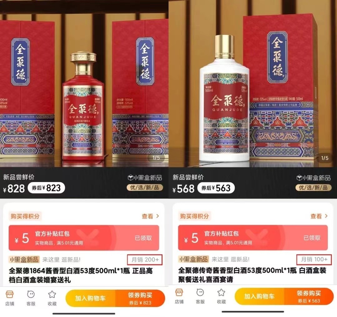 但诡异的是,这些酒类产品的实际销量却低的可怕。从淘宝和京东的旗舰店数据来看,两种明星白酒产品的销量居然都只有三位数,在销售市场上着实激不起一丝波澜。