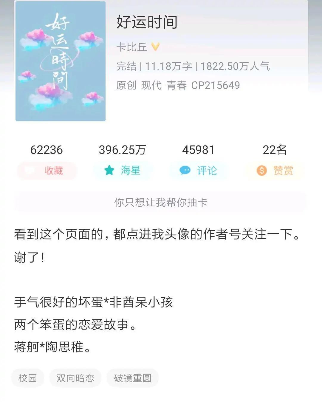 非酋受遇到欧皇攻,然后一直让攻帮忙抽卡的爱情故事,感情酸酸甜甜,非常细腻,攻超级好,受也超级可爱,不得不说卡比丘大大真的太会了!