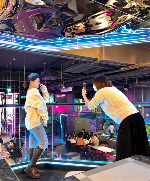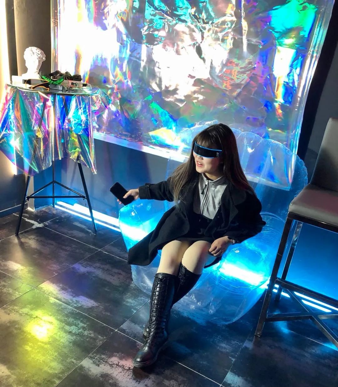 店里还有专门的网红拍照打卡地,有灯光,镭射墙,还有透明椅子和道具,非常适合出片。