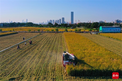 11月13日,黄埔区大吉沙岛的隆平稻香园的稻谷收割了。南都拍客 唐谭敏 摄