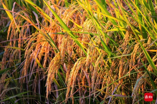11月15日,广州大吉沙隆平稻香园,阳光下的稻谷披金飘香、粒粒满仓。南都拍客 陈健明 摄