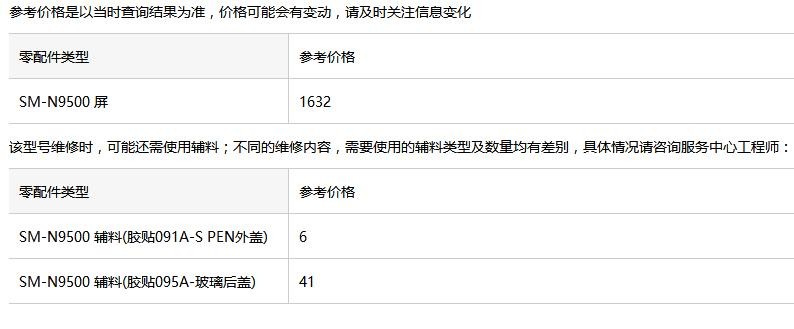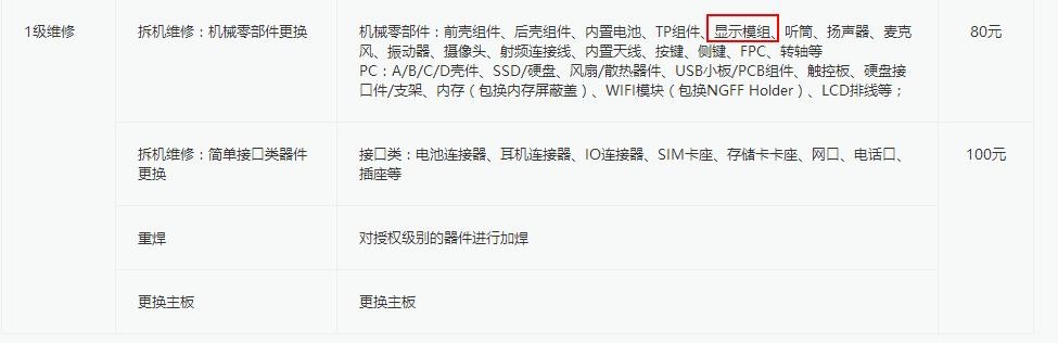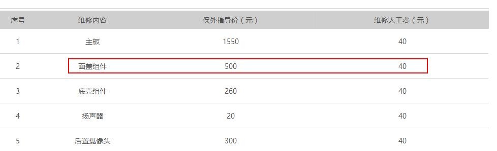 华为 Mate 10的配件维修价格如下图所示: