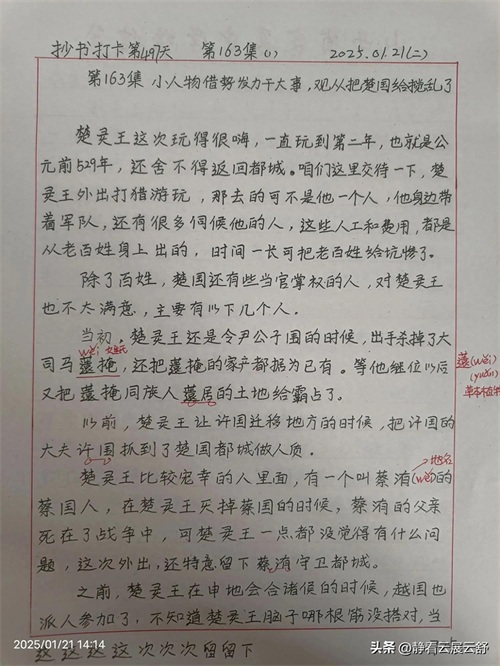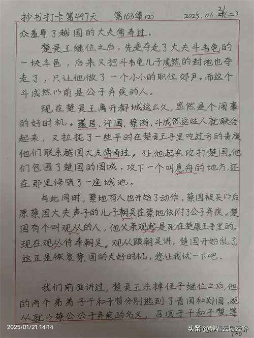 今天分享的抄书内容是《从远古到春秋》第163集 小人物借势发力干大事,观从把楚国给搅乱了(1)