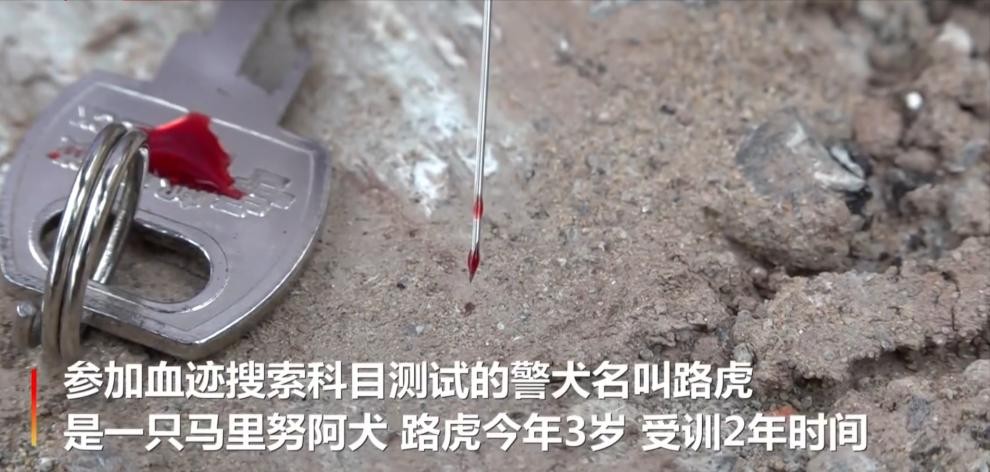 如果是出动人力,可能几个小时的时间都不够找到这枚钥匙。而警犬“路虎”,仅用了1分27秒,就成功找到了这枚带有一滴血的钥匙,这速度真的堪称“神话”!