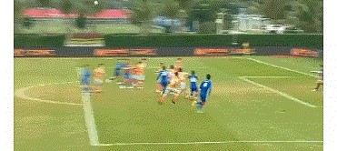 第10分钟,前场左侧,钱杰给开出一脚非常飘逸的任意球至门前,金洋洋从人群中杀入高高跃起头球攻门将球砸入了球门的左下角,对方门将明显慢了一拍,虽然方向判断正确并做出了扑救动作,但并没有摸到皮球,只能眼睁睁看着皮球飞入自家球网。上海申花队以闪电速度轰开了深圳队的大门。