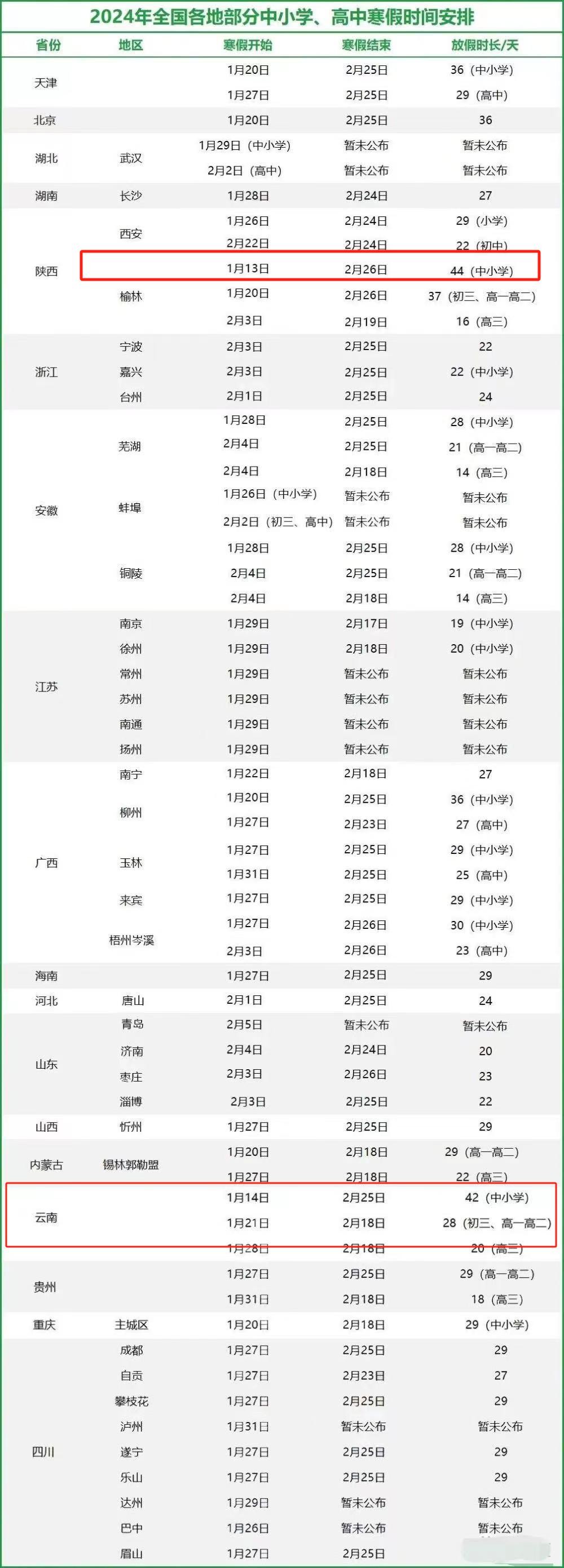 注: 以上仅为部分省份地区统计,内容仅供参考,具体放假时间请以当地教育局公布时间为准。