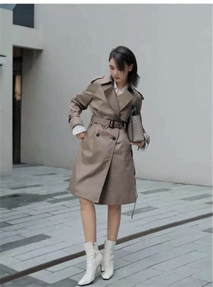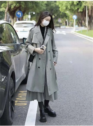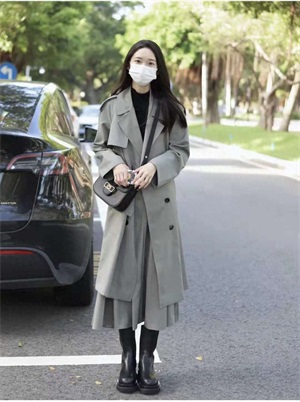 风衣穿搭:春天这个季节需要一件风衣来适应气温的变化,这件风衣拿到手感觉就是看起来很贵的那种。颜色也是比较特别又低调的水泥灰,搭配同色系的半身裙,简约又高级,内搭和黑色短靴相呼应,一套高级感满满。