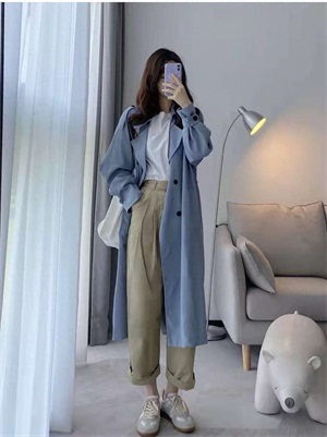 风衣穿搭:蓝色系温柔安静又高级,通勤面试日常通通拿下!这个蓝色风衣是那种低饱和灰调的蓝,又高级又百搭还显白,内搭选择了白色T恤打底,下半身无论是搭配卡其色休闲裤还是白色九分牛仔裤都很好看。