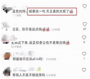 这番言论让网友们很是不解“有钱人不是不做选择吗”,甚至还有人直接吐槽郭富城“天王真的太抠了”。