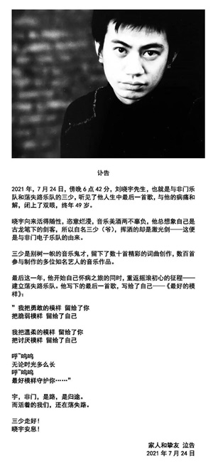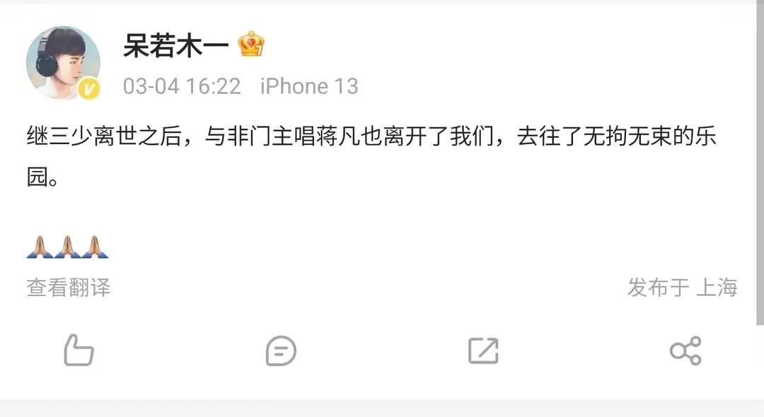 大家都在悲痛中没有缓过来时,现在又有噩耗传来,37岁的与非门乐队主唱蒋凡去世。