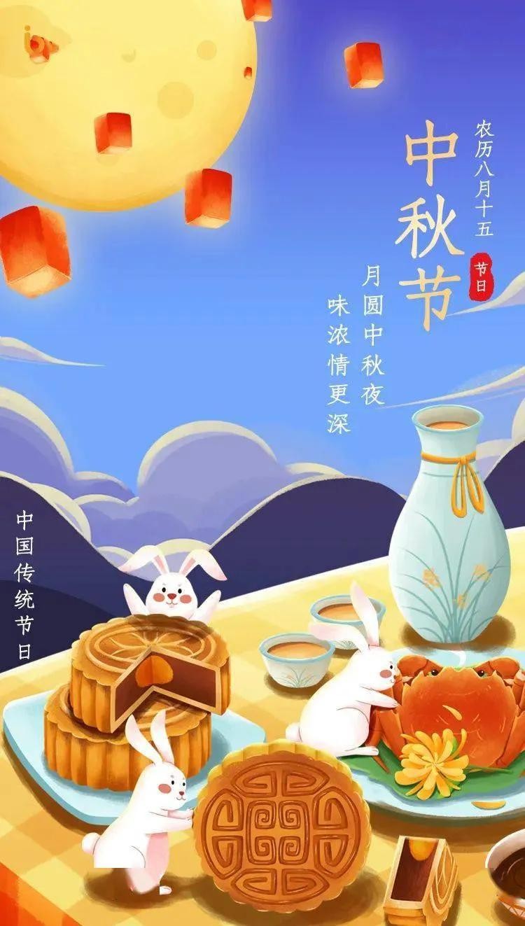 5. 中秋节:家人团聚,赏月、吃月饼是中秋节的象征。