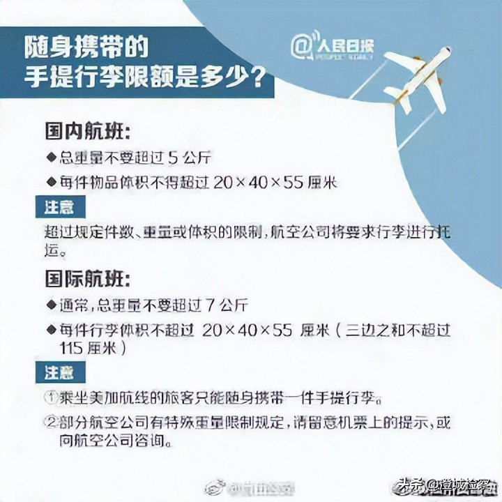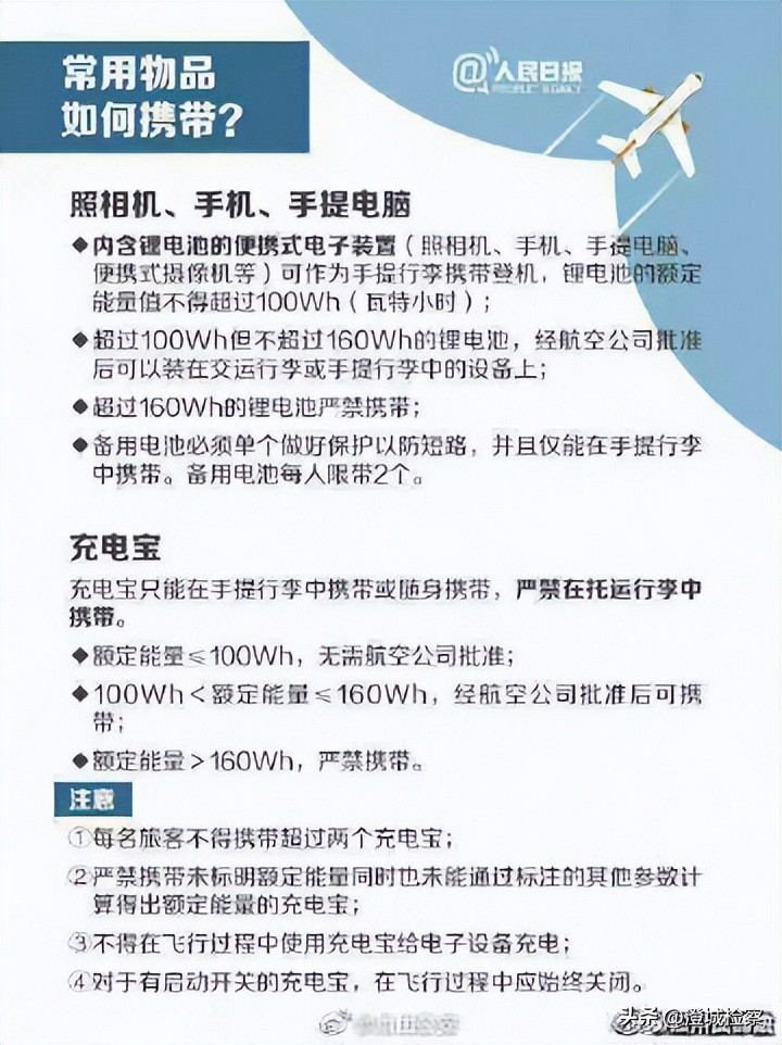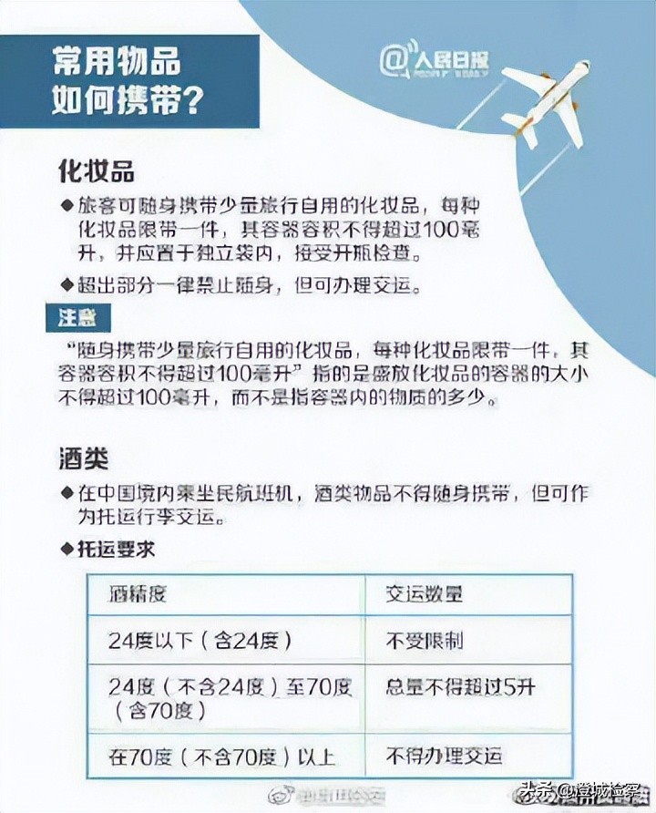 【收藏!超实用乘机指南】关于乘机,民航都有哪些规定?手机、电脑、充电宝要怎样携带?化妆品、酒类物品能否带上飞机?手提行李、托运行李的限重分别是多少?收好这份实用乘机指南↓↓@人民日报