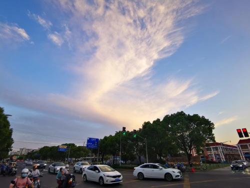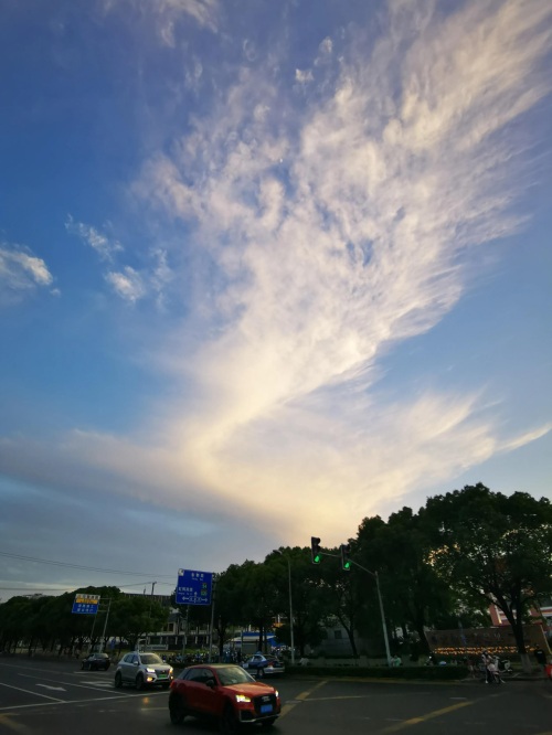 2022年6月8日,上海。18:30左右,上海南部天空出现一片宛如“天使翅膀”的云,美轮美奂。