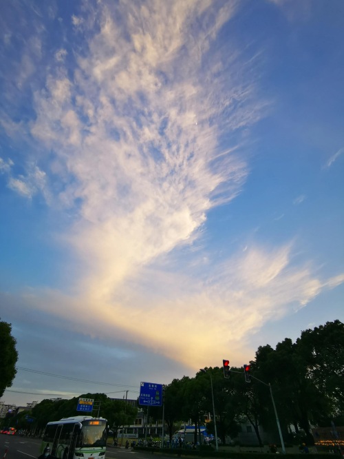 上海昨天傍晚天空现“天使翅膀”云 景象美轮美奂