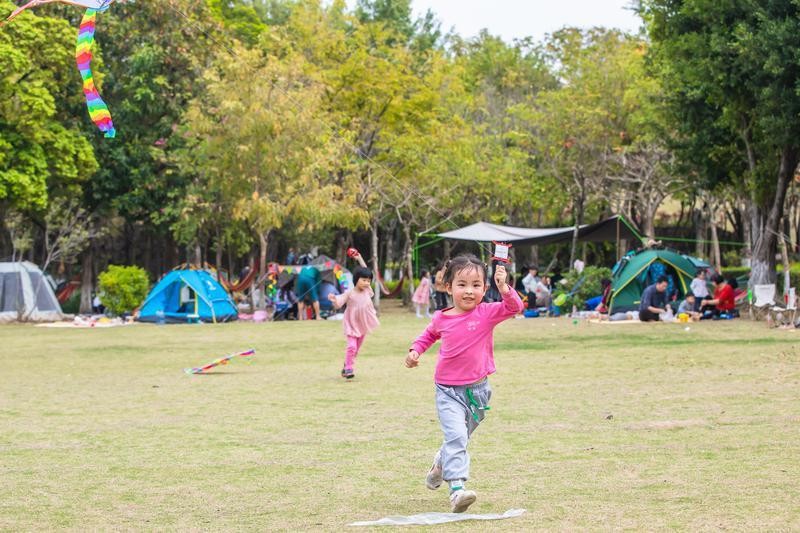 云东海国家湿地公园的草坪上,小朋友们正在放风筝。(摄影:王澍)