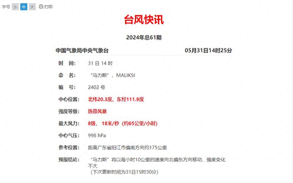 5月31日,据中央气象台消息,今年第02号台风“马力斯”于31日14时在南海北部海面上生成。