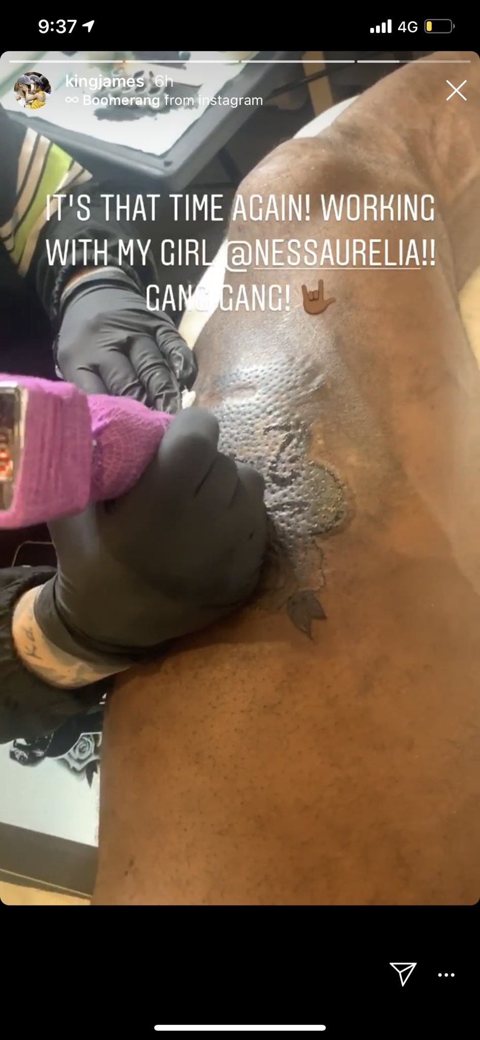 曼巴精神传承,詹姆斯浓眉纹身致敬科比