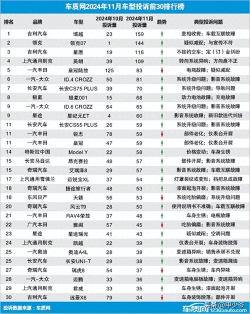 车质网11月汽车投诉排行!爱车上榜了吗?