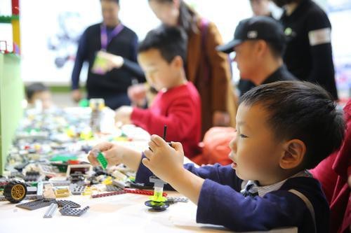 2019年11月16日,小朋友在北京国家会议中心儿博会互动体验区拼接积木。当日,“2019婴芭莎儿博会-北京站”展览在北京开幕。展览分“孕妈婴童展”“成长教育展”“儿童玩具展”“游乐嘉年华”“幼儿才艺展”等内容,吸引了众多家庭前来观展。据悉,婴芭莎是“中国婚博会”旗下专业化的母婴行业平台,每年在北京、上海、天津、武汉、广州、杭州等6个城市举办春夏秋冬四季展,为各地妈妈和0-6岁的宝宝提供高品质、安全、健康的母婴类产品和服务。(光明日报全媒体记者郭俊锋摄)