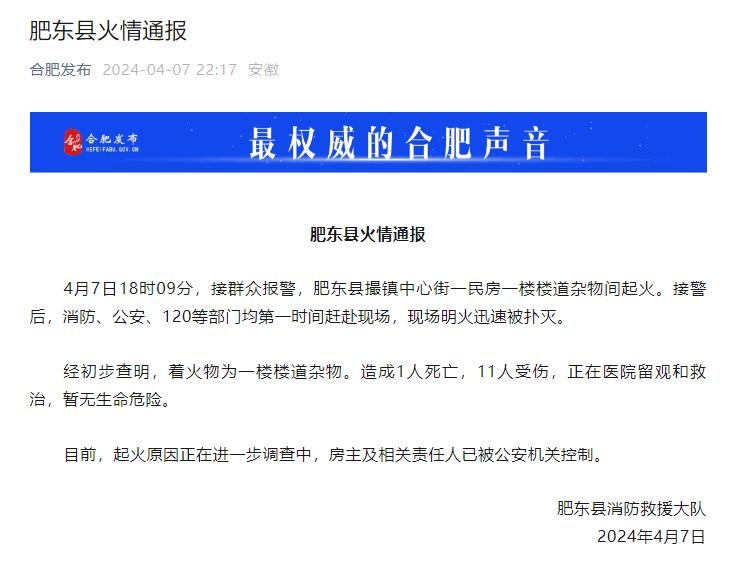 经初步查明,着火物为一楼楼道杂物。造成1人死亡,11人受伤,正在医院留观和救治,暂无生命危险。
