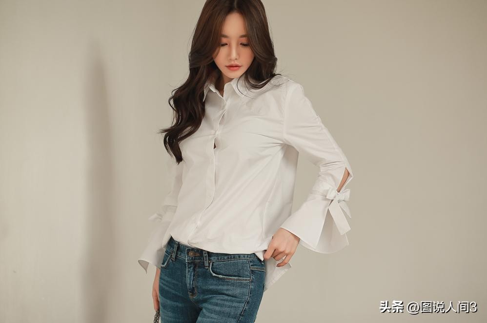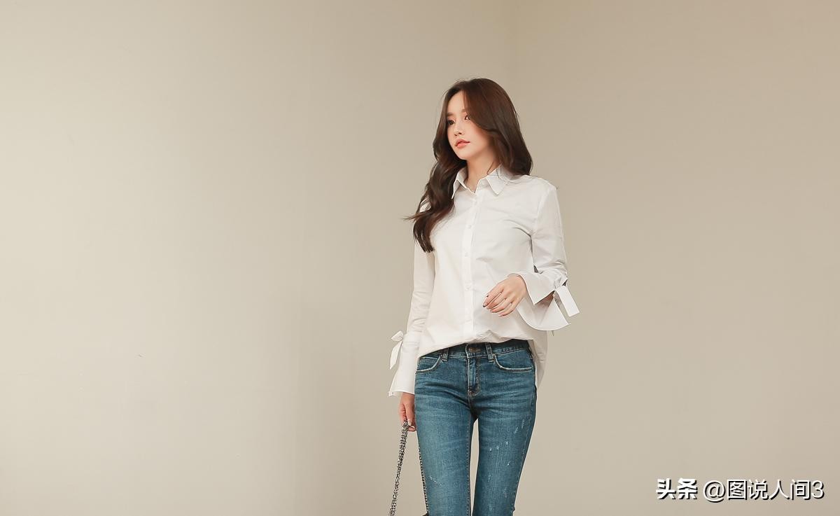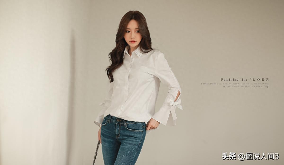 孙允珠 白色气质衬衫搭配紧身牛仔裤