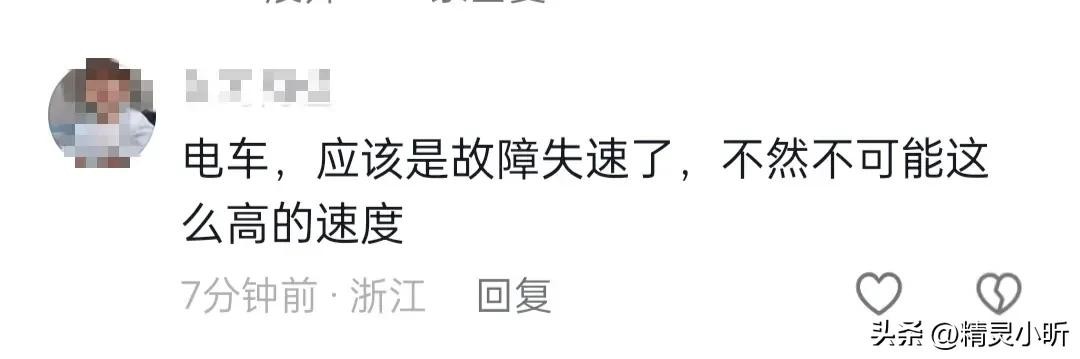 有网友表示:这个车应该是电车,故障导致失速了,不然不可能开这么高的速度。