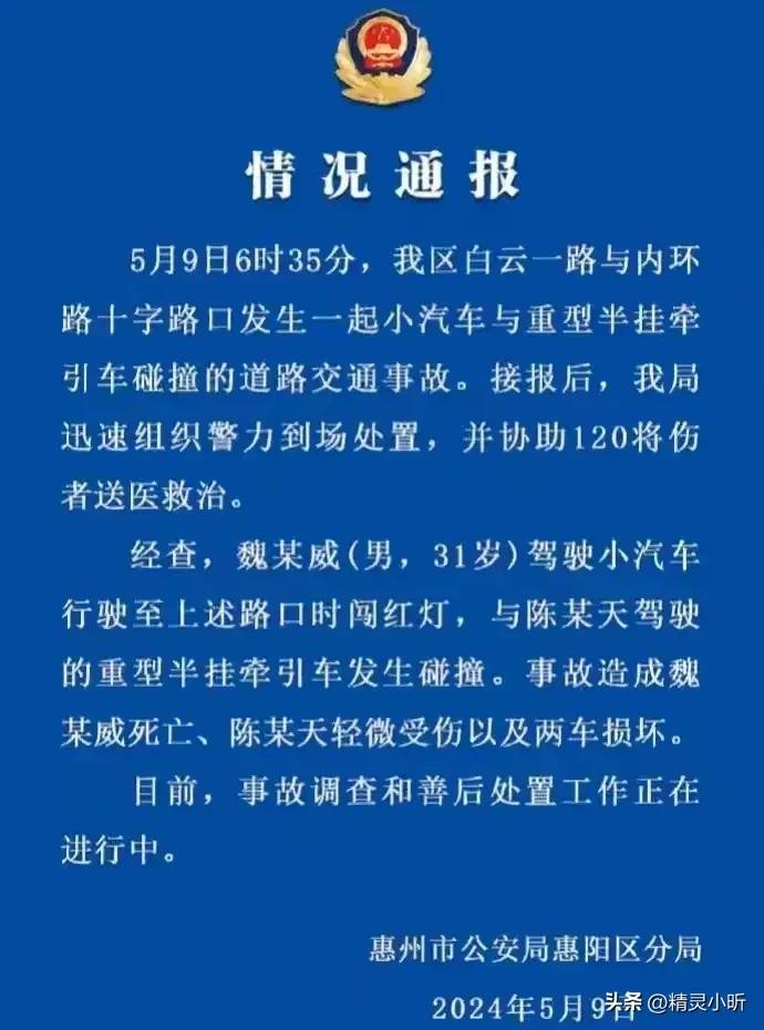 这个轿车司机(魏某,31岁,男),直接被车行挤压,经过抢救也无力回天。事故原因是轿车以200多码的速度,直接闯红灯横穿马路撞向大货车的,而大货车也被这么一撞擦伤了,目前也没有多大危险。