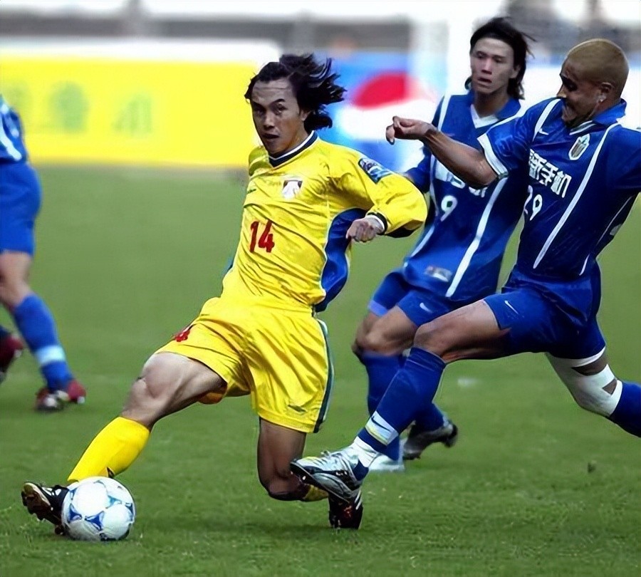 身穿5号球衣的巴西前锋桑托斯虽然人高马大,但他却并不是那种传统的“黑又硬”,身为巴西球员的他酷爱脚下盘带,也因此会经常贻误战机。2000年,他在全兴队效力一年,发挥中规中矩,7个进球的成绩单只能说及格。之后他加盟成都五牛,在甲B赛场上降维打击,并在2002年获得了甲B联赛的金靴。
