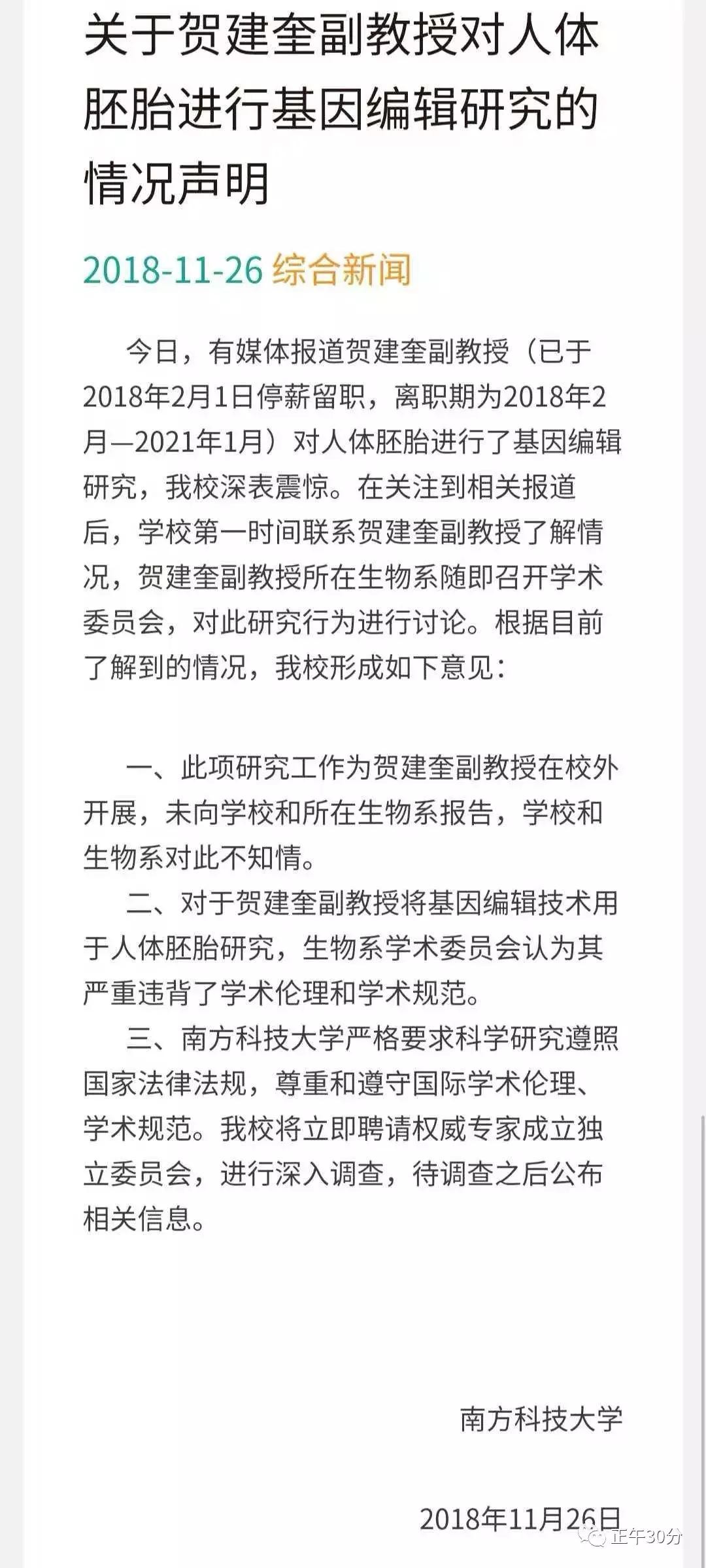 不过,这次事件仍然充满了重重疑点。首先是南方科技大学发表声明称学校和生物系对此事不知情。