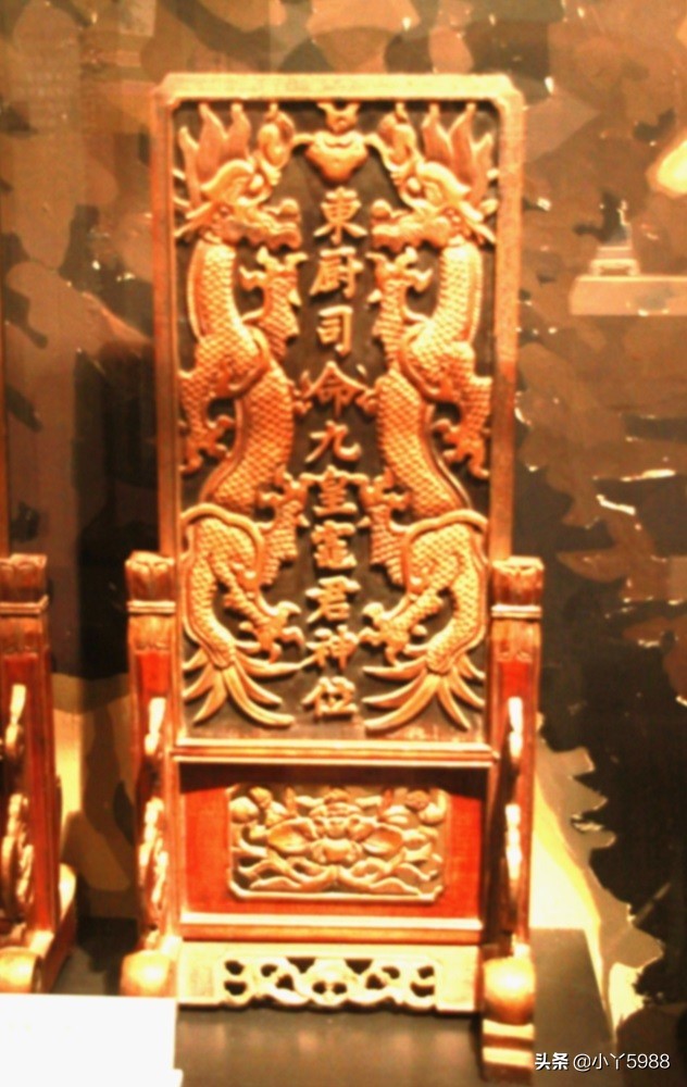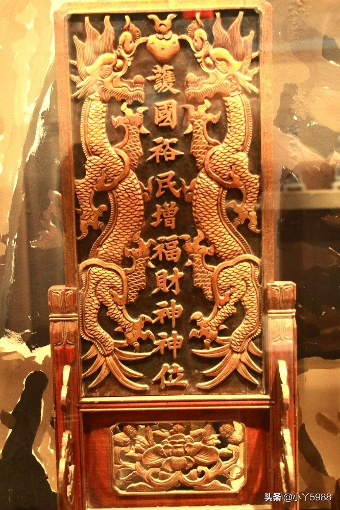 下面的这组照片,是小丫拍摄于首都博物馆的文物——灶王爷神位牌。这一组神位牌用名贵的红木制作而成,一个上写“东厨司命九皇皂君神位”,一个上写“护国裕民增福财神神位”。