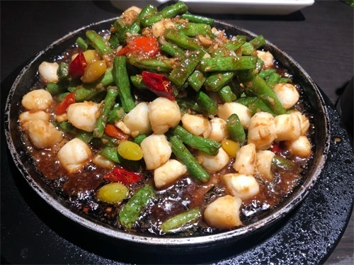 ◦ 铁板爆炒鲜贝:鲜贝很嫩,铁板把鲜贝的汁水都锁住了。但我感觉调味可以再淡一点,稍微有点咸了,影响了鲜贝的 “颜值”。