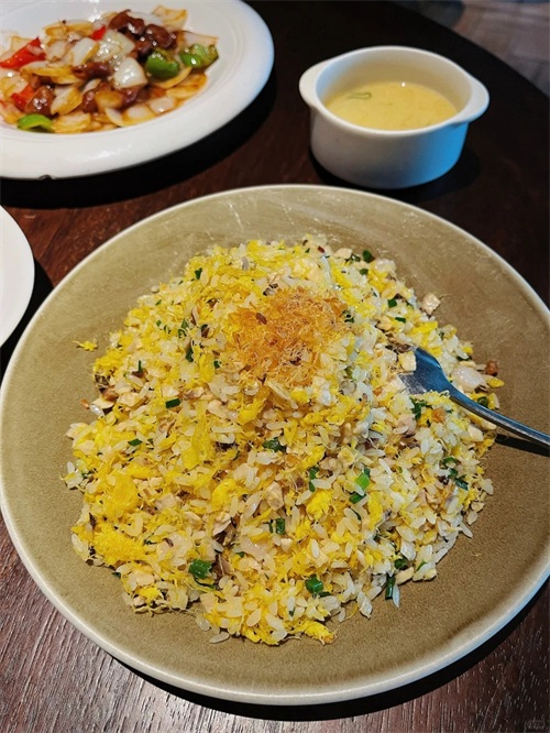 ◦ 扬州炒饭:米饭粒粒分明,配料丰富,味道很好。就是感觉火腿可以再多放点,我超爱火腿的,少了火腿感觉少了灵魂。