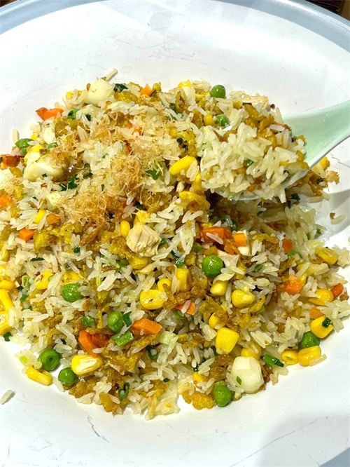 ◦ 扬州炒饭:和我在别家吃的不太一样,这家的炒饭料特别足,米饭炒得干香,就是感觉盐稍微放多了一丢丢,咸了那么一咪咪,不过整体还是很奈斯。