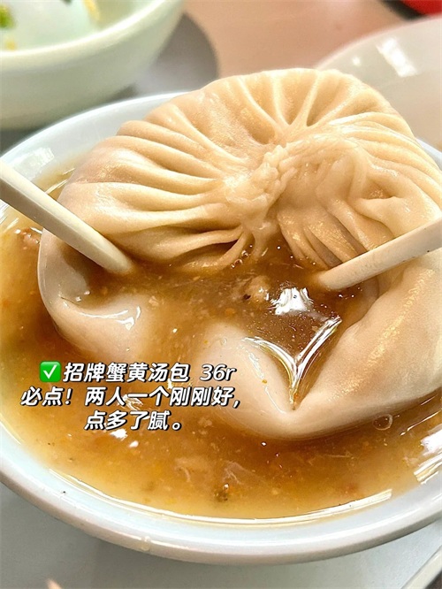 ◦ 蟹黄汤包:这可是招牌,汤包很大,汤汁鲜美,蟹黄味浓。不过吃的时候要小心,汤汁很烫,而且我感觉蟹黄的腥味稍微有点重,要是能处理得更好就无敌了。