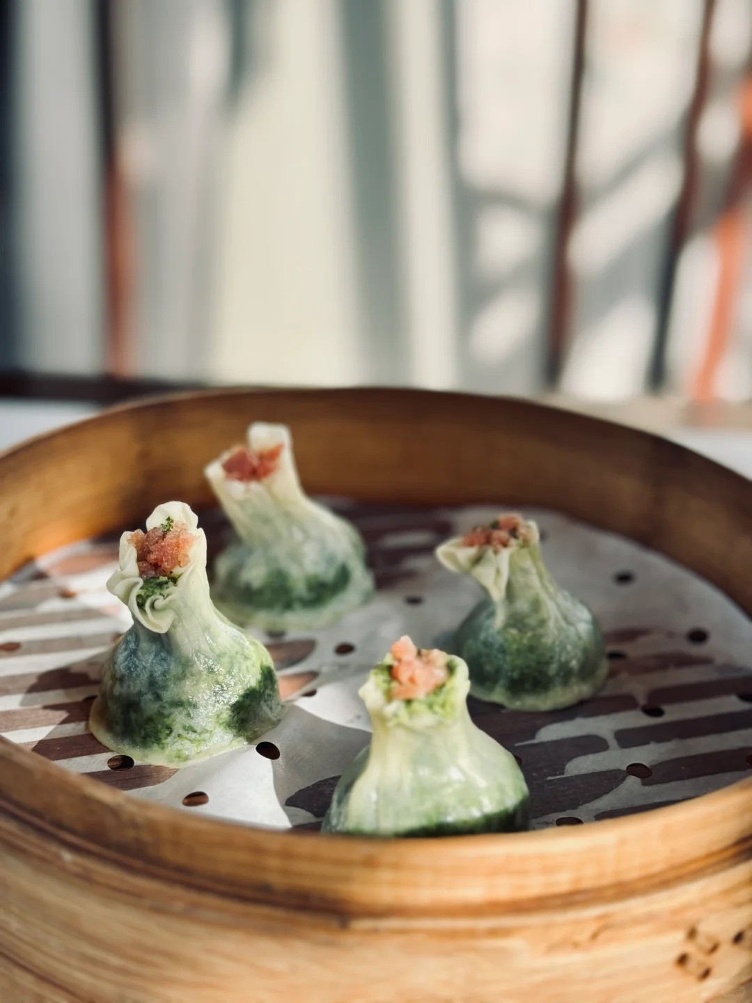 ◦ 翡翠烧卖:颜值超高,碧绿晶莹的,味道甜咸适中。就是我觉得烧卖皮可以再薄一点,会更完美,不然感觉有点 “厚脸皮”。