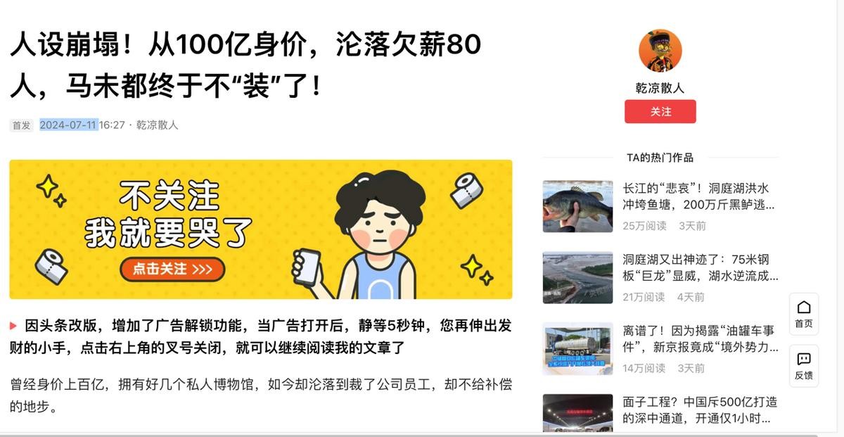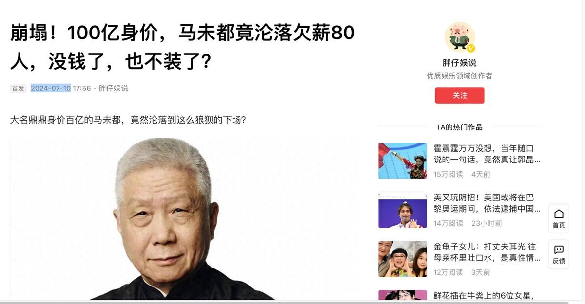 娱栀2024-07-13人设崩塌!100亿身价,马未都竟沦落欠薪80人,终于不“装”了!