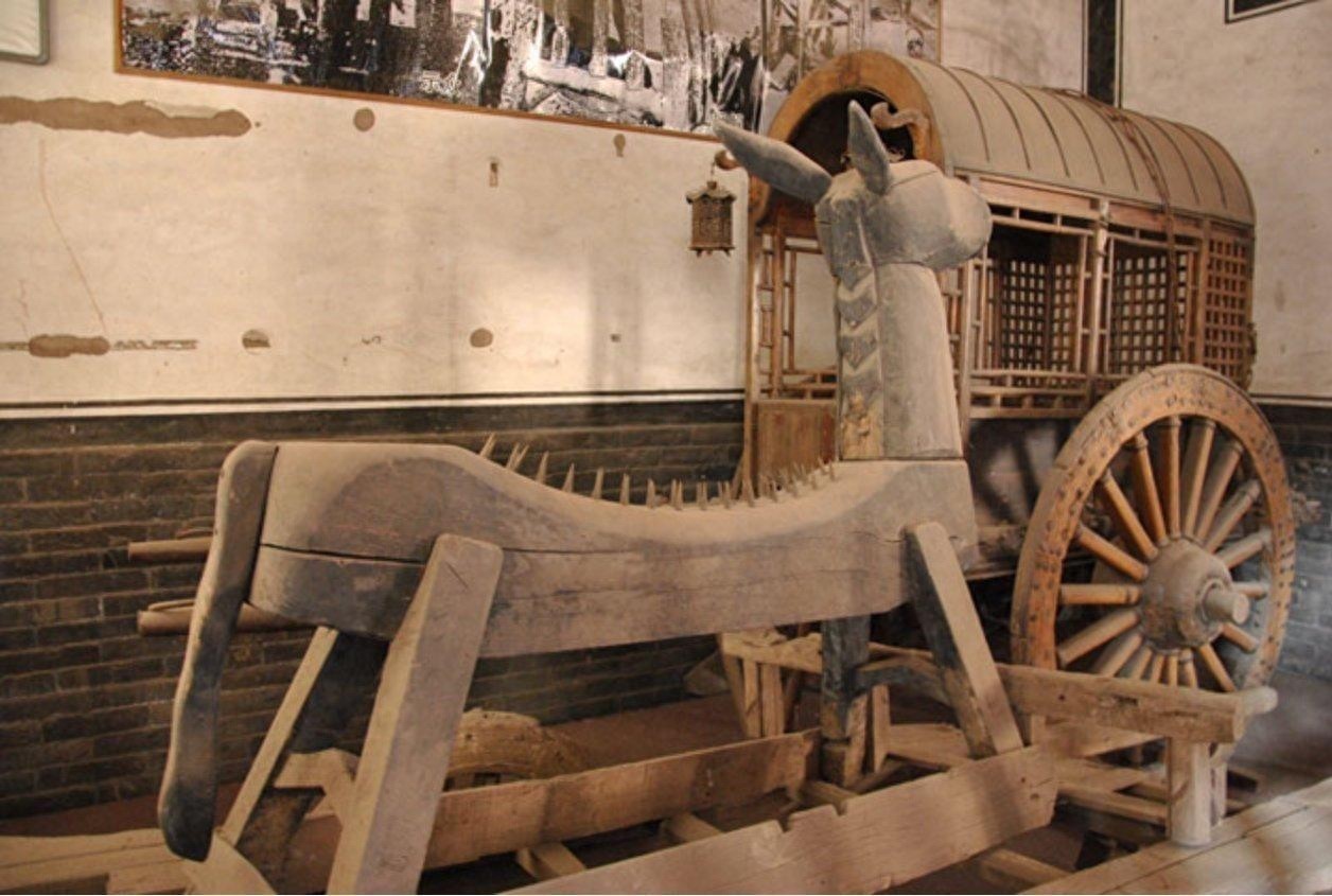 根据《后汉书》对木驴这种酷刑工具的描述,木驴长有三尺,高四尺,宽三尺;在木驴的身上钉着一根粗约两寸,长约一尺的木桩。木驴有四条腿,每条腿的底座都有一个轮子。