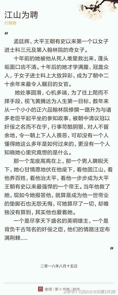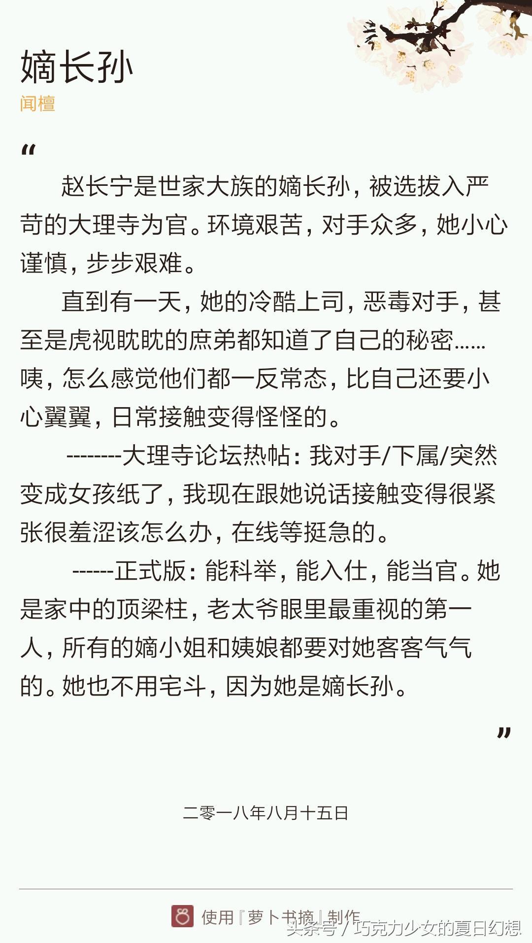 小编昨天看了由天下归元的《凰权》改编的电视剧《天盛长歌》,不得不感叹一句电影咖即使演了电视剧也始终带着电影的高级感,所以有感而发整理了一些和《凰权》一样女主女扮男装入朝为官的小说和小仙女们分享,希望小仙女们能喜欢。