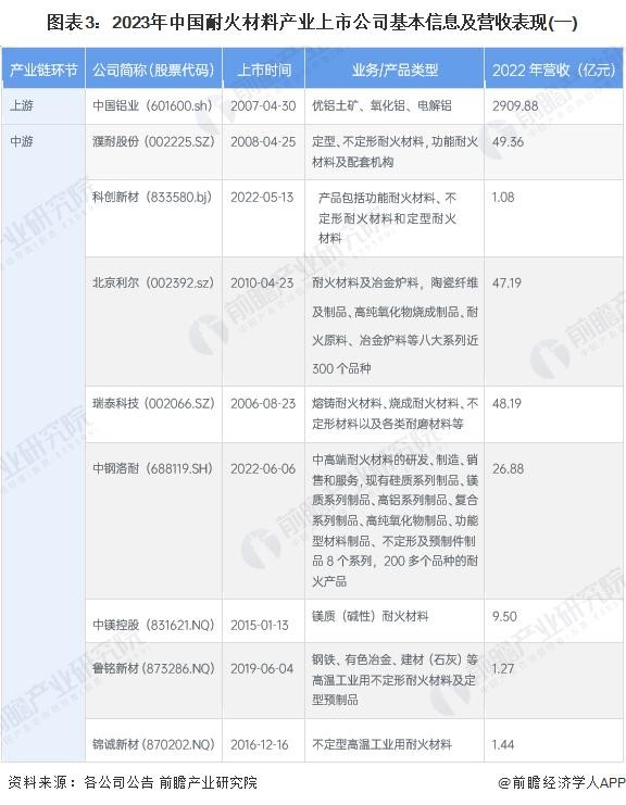 ——原标题:【最全】2023年耐火材料产业上市公司全方位对比(附业务布局汇总、业绩对比、业务规划等)