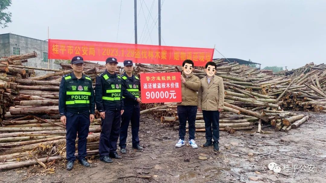近日,桂平警方经缜密侦查,成功破获一起盗伐林木案,依法查处两名盗窃嫌疑人,将被盗伐的桉木全数追回并返还给某国有林场,为企业挽回损失近9万元。