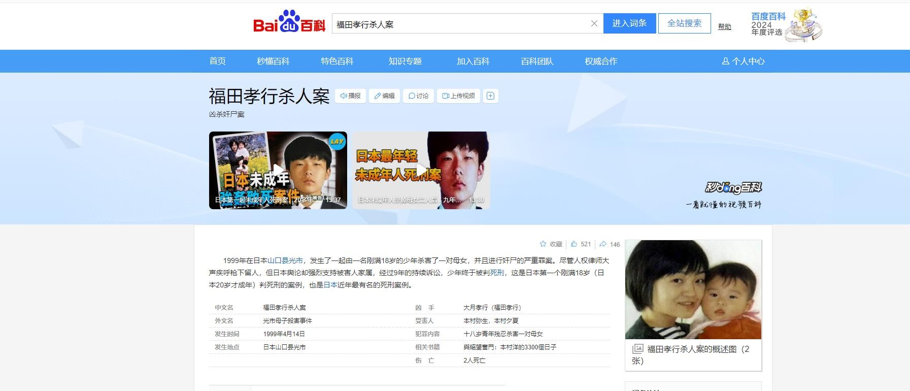 2001年,日本法院给出了无期徒刑的判决,理由就是福田孝行犯罪时,还是个未成年。