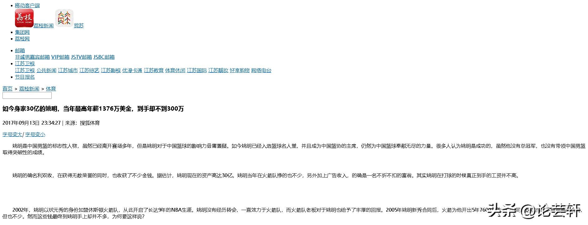 信息来源:荔枝新闻:如今身家30亿的姚明,当年最高年薪1376万美金,到手却不到300万