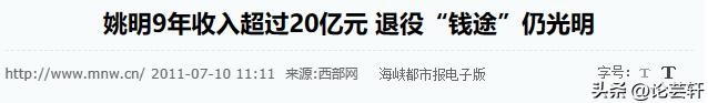 原文刊载于西部网 海峡都市报电子版2011-07-10关于“姚明9年收入超过20亿元 退役“钱途”仍光明”