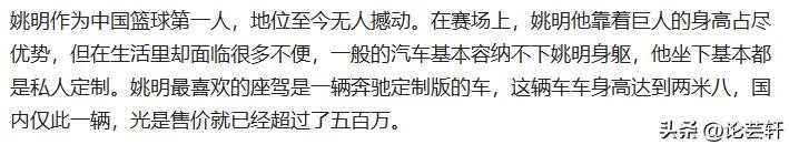 据悉,姚明最喜欢的座驾是来自奔驰的定制款,这辆车的身高就直接高达两米八,售价更是惊人达到了五百万!