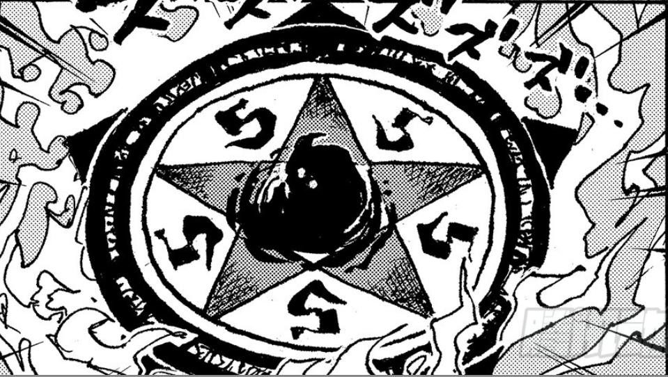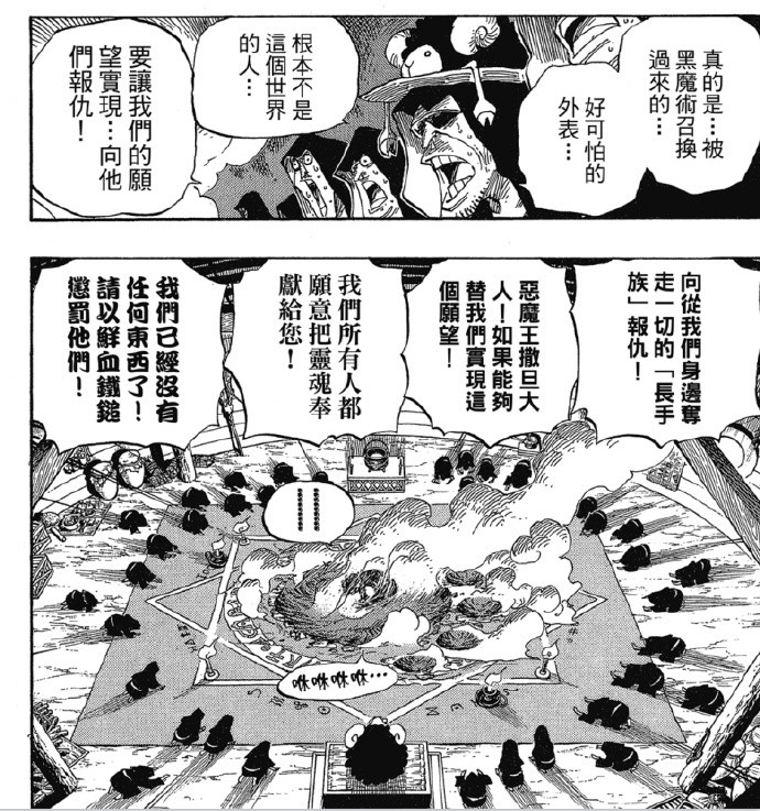 这个阵类似的之前也出现过,就是当初布鲁克掉落到伟大航路“纳玛库拉岛”上的“贫困王国” 哈拉海塔尼亚,落在了法阵,这是召唤撒旦恶魔的阵。
