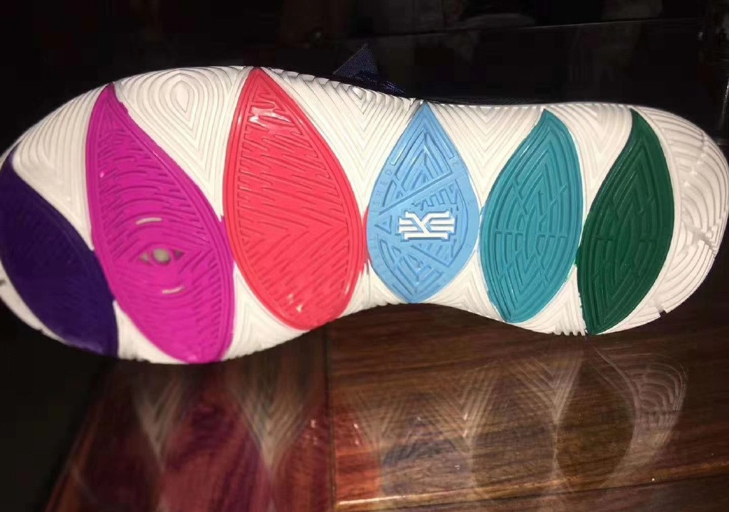 这次曝出的实物图呢,从鞋底上不难看出,采用了很多全视之眼的设计元素,并且石锤了一点:欧文5的确采用了前掌Zoom Air的配置,具体气垫形态如何,还不得而知。三条Flywire连接至前掌鞋带区域,整体鞋身看起来应该是普通的织物网面。
