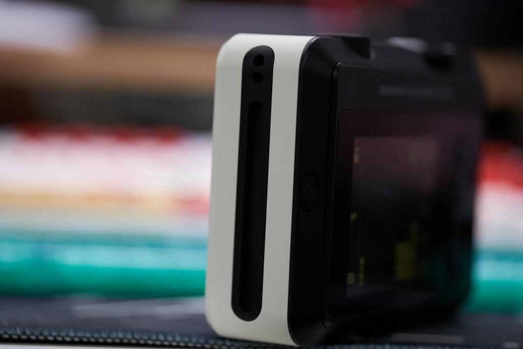 其侧面用于输出相纸,在选择完想要打印的照片后,轻轻一拉机身背面的拉杆即可打印出一张成片。只不过大家在打印照片之前一定要三思,毕竟徕卡 Sofort 2 的相纸高达 12 块钱 / 张,用起来还是非常之心痛的。