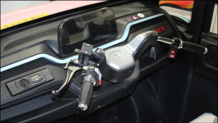 安全配置方面,车辆配置的是后轮双碟刹制动,这一点同样是为了节约成本考虑,但对于时速最高只有50公里/小时,双碟刹也基本够用;而在夜晚出行安全上,车辆配置的灯光比较齐全,包括远近光灯、转向灯、高亮顶灯,保障安全;另外还有洪亮喇叭、加宽加厚真空胎等安全配置。