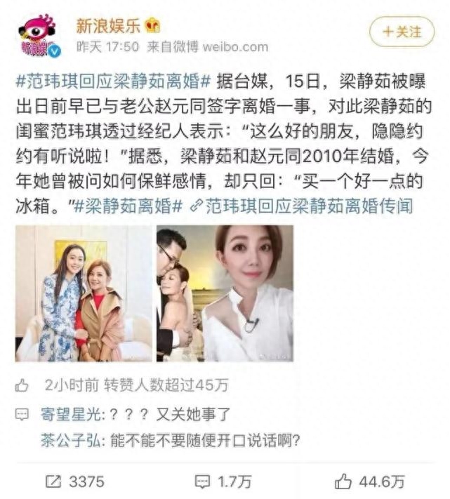 但几天后,作为梁静茹多年好友的范玮琪,却透过经纪人私自向媒体确认了离婚消息,