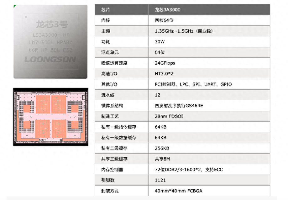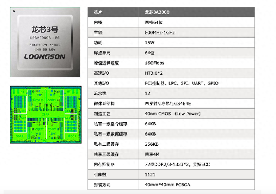2015年,龙芯推出的全新一代“龙芯3B2000”处理器,就是采用龙芯GS464E自研架构,在功能和功耗方面与上一代龙芯3A1000相当的基础上,性能得到了成倍提升,同时达到了国际主流高性能处理器水平。